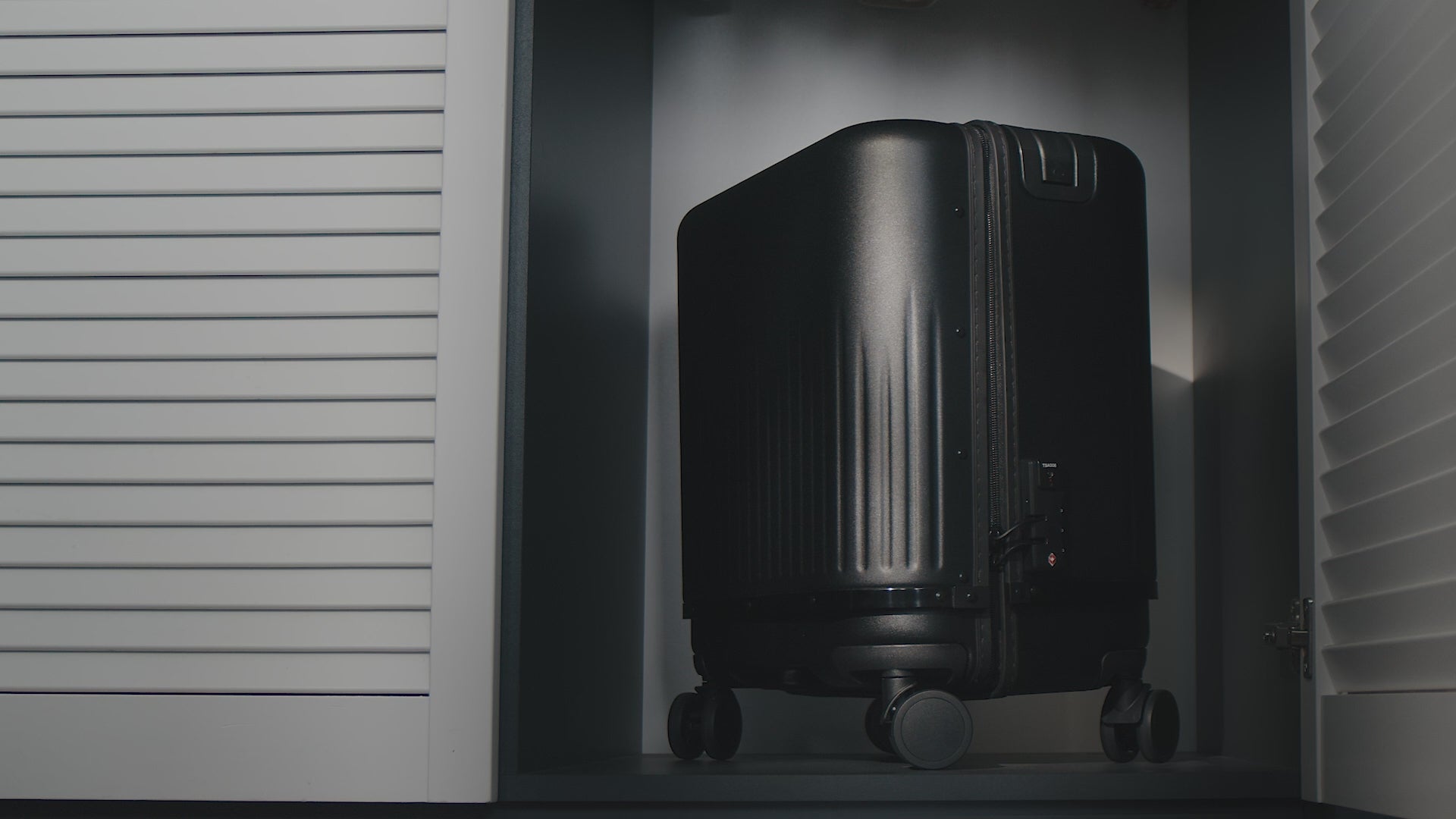 Additionally, there are handles located on the bottom of the luggage, making it easy for us to pick up and place the suitcase.